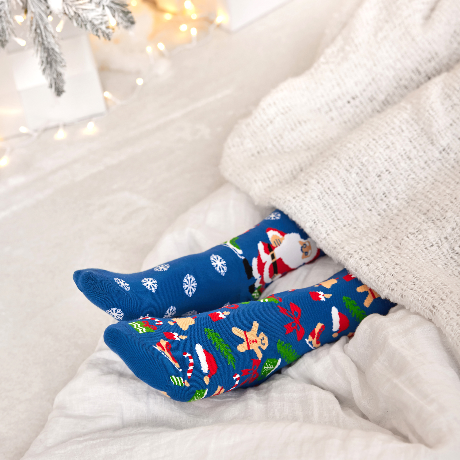 Mikołaj znowu się pospieszył! Tym razem wysypał prezenty z worka prosto na Twoje stopy! Te skarpety pełne są świątecznych niespodzianek – ciepłe, wygodne i gotowe na każdy krok wśród choinkowych migających światełek. Załóż je i poczuj się jakbyś to Ty właśnie znalazł najlepszy prezent pod choinką!